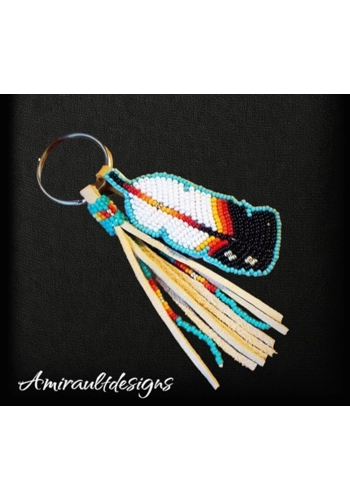 Handmade flat beaded keychain. Can be personalized to any color. Leather backing with key ring. Normally, it takes 3 to 4 days. Items are made to order.